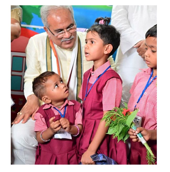 इस दौरान नन्हे बच्चों को देखकर उनके बीच जा पहुंचे और बच्चों से किसी छोटे बच्चे की तरह ही उनकी शैली में बातचीत करने लगे। मुख्यमंत्री के इस तरह के अंदाज से आंगनबाड़ी में मौजूद बच्चे भी सहज हो गए और खुलकर उनसे बातचीत की।