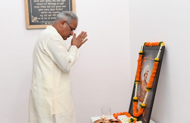 रायपुर । मुख्यमंत्री श्री भूपेश बघेल ने अपने निवास कार्यालय में आदिवासियों के उत्थान के लिए आजीवन संघर्ष करने वाले महान क्रांतिकारी जननायक श्री बिरसा मुण्डा की पुण्यतिथि के अवसर पर उनके चित्र पर पुष्प अर्पित कर श्रद्धांजलि दी ।