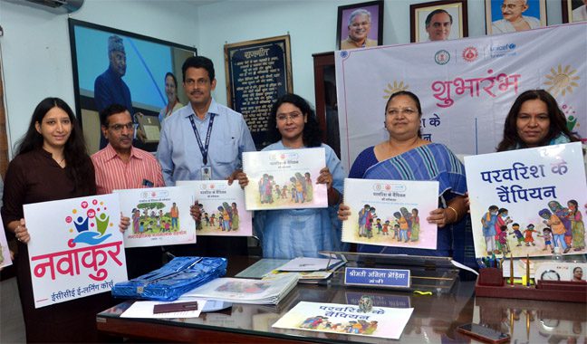 यूनिसेफ के स्टेट हेड श्री जॉब जकारिया ने बताया कि बच्चों का सर्वाधिक विकास 2 साल तक की उम्र तक होता है। इस समय बच्चे अधिकांश समय अपने परिवार के बीच बिताते हैं। माता-पिता के साथ-साथ परिवार को सही गाइडेंस देकर बच्चों के शारीरिक, मानसिक और बौद्धिक विकास को सही दिशा दी जा सकती है। इसके लिए ’परवरिश के चैम्पियन’ कार्यक्रम तैयार किया गया है। इसमें खेल खेल में बच्चों का विकास कैसे करें यह बताया जाएगा। इसमे 6 वर्ष से कम उम्र के 25 लाख बच्चे शामिल होंगे। इन बच्चों के माध्यम से उनके पालकों तक पहुंचने का प्रयास किया जाएगा। ’नवांकुर’ आठ घण्टे का ई-लर्निंग प्रोग्राम है, जिसकेे तहत आंगनबाड़ी कार्यकर्ताओं, सीडीपीओ को ट्रेनिंग दी जाएगी। अब तक 51 हजार आंगनबाड़ी कार्यकर्ताओं में से 35 हजार कार्यकर्ता का पाठ्यक्रम के लिए पंजीयन हो चुका है। प्रयास है कि आगामी 6 माह में सभी कार्यकर्ता और बाल विकास परियोजना अधिकारी प्रशिक्षित हो जाएं। इस अवसर पर महिला एवं बाल विकास विभाग की संचालक श्रीमती दिव्या मिश्रा, विभागीय और यूनिसेफ के प्रतिनिधि उपस्थित थे।