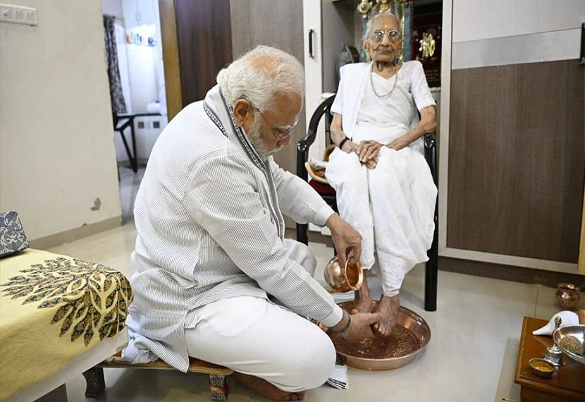 Home » मां का 100वां जन्मदिन मनाने गांधीनगर पहुंचे पीएम मोदी, पैर धोकर लिया आशीर्वाद