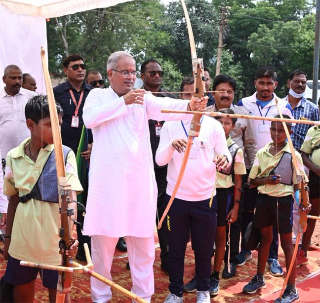 मुख्यमंत्री श्री बघेल ने आर्चरी का प्रशिक्षण ले रहे बच्चों से आर्चरी की बारीकियों पर बात की और उनका उत्साहवर्धन करते हुए निरंतर अभ्यास के लिए प्रेरित किया। गौरतलब है कि तीरंदाजी केन्द्र एवं एकलव्य खेल एकादमी जिला प्रशासन के द्वारा जिले के बच्चों एवं युवाओं को राष्ट्रीय स्तर की खेल प्रशिक्षण सुविधा उपलब्ध कराने के उद्देश्य से तीरंदाजी केन्द्र एवं एकलव्य खेल एकादमी प्रारंभ की गई है। जहां तीरंदाजी ताईक्वांडो एवं तैराकी का संचालन माह अप्रैल 2022 से किया जा रहा है। तीनों विधाओं के 10-10 छात्रों की आवास एवं भोजन की व्यवस्था की गई है। साथ ही खेल प्रशिक्षक नियुक्त किए गए है एवं खेल सामाग्री भी उपलब्ध करायी गयी है।