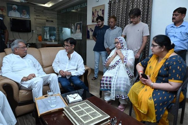 दुर्ग।मुख्यमंत्री भूपेश बघेल ने आज पूर्व विधायक स्वर्गीय भजन सिंह निरंकारी के भिलाई स्थित आवास पहुंचकर उनके शोक संतप्त परिजनों को ढांढस बंधाया।