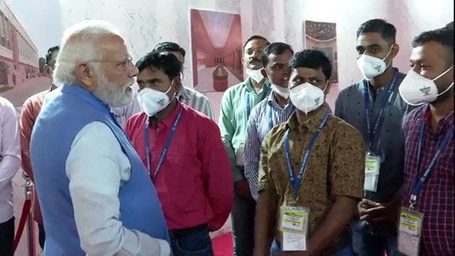 पीएम मोदी ने पूछा, आप लोगों को क्या लगता है, इमारत बना रहे हैं कि इतिहास बना रहे हैं? मजदूरों ने जवाब दिया कि इतिहास बना रहे हैं। इस पर मोदी ने कहा, बड़े जागरूक हो भाई। इसके बाद प्रधानमंत्री ने पूछा, आपको काम करते हुए कैसा लगता है। क्या घर बनाने में और इस इमारत को बनाने में कोई फर्क है? मजदूरों ने जवाब दिया कि घर वाले पूछते हैं कि काम कैसा चल रहा है। इसके बाद पीएम ने मजदूरों से राशन के बारे में भी पूछा। उन्होंने कहा कि क्या उनका वन नेशन वन राशन वाला कार्ड बना है? सबने हां में जवाब दिया।