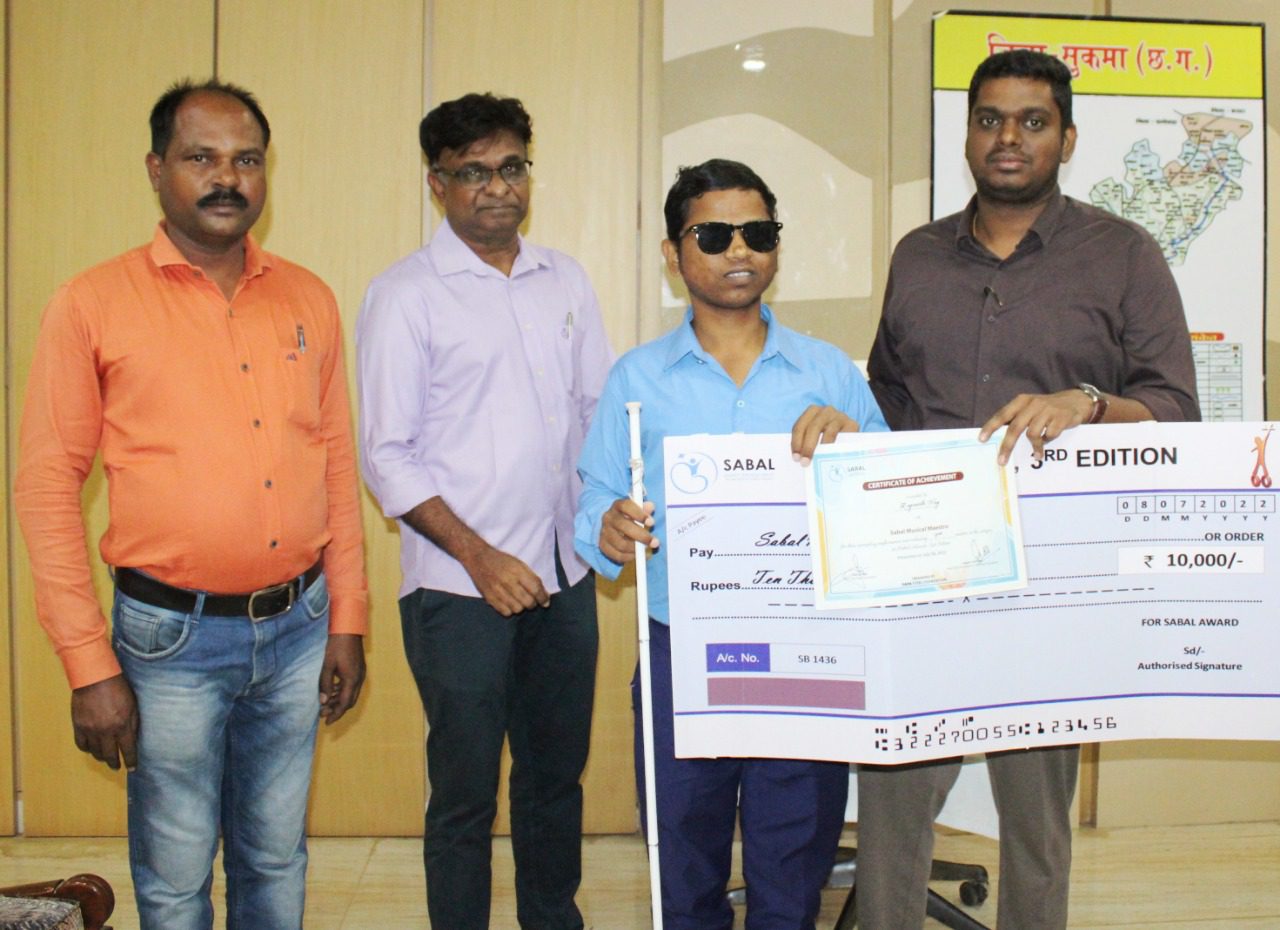 जिन्होंने हाल ही में जमशेदपुर, झारखण्ड में टाटा स्टील फाऊंडेशन द्वारा दिव्यांग बच्चों के विशिष्ट कला प्रतिभा को प्रोत्साहित करने राष्ट्रीय स्तर पर आयोजित सबल अवार्डस् में छत्तीसगढ़ राज्य का प्रतिनिधित्व किया। रघुनाथ पूर्णत: दृष्टिबाधित हैं मगर उनके हौसले और जीवन जीने का अंदाज प्रेरणादायक है। उनमें गजब की गायन प्रतिभा है, रघुनाथ ने 17 राज्यों के प्रतिभागियों के बीच निर्णायकों को अपनी प्रतिभा का लोहा मनवाया और तीसरा पुरस्कार अपने नाम किया। हार्मोनियम वादन के साथ ही रघुनाथ ने ”ऐसी लागी लगन…” पर सुरों का ऐसा समा बाधां कि सब मंत्रमुग्ध रह गये। आज कलेक्टर श्री हरिस. एस ने रघुनाथ को इस विशिष्ट उपलब्धि के लिए बधाई दी और भविष्य में गायन-वादन के क्षेत्र में सफलता के लिए शुभकामनाएं दी। रघुनाथ को सबल फाऊंडेशन द्वारा प्रशस्ति पत्र और 10 हजार का चेक पुरस्कार प्रदान किया गया है।