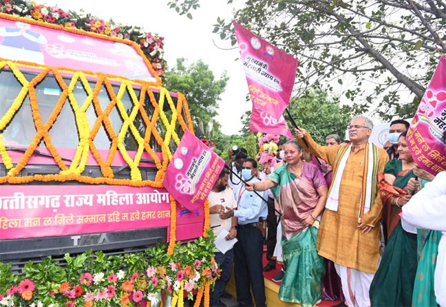 रायपुर । राजगीत से कार्यक्रम की शुरुआत हुई। मुख्यमंत्री ने महिलाओं की सुरक्षा और स्वास्थ्य के संबंध में शपथ भी दिलाई मुख्यमंत्री भूपेश बघेल ने अपने निवास परिसर से मुख्यमंत्री महतारी न्याय रथ को हरी झंडी दिखाकर रवाना किया और शुभकामनाएं दी। राजगीत से कार्यक्रम की शुरुआत हुई। मुख्यमंत्री ने महिलाओं की सुरक्षा और स्वास्थ्य के संबंध में शपथ भी दिलाई ।