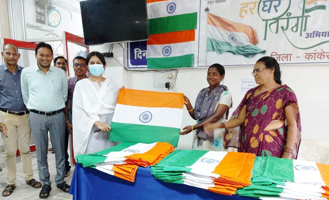 कांकेर । आजादी की 75वीं वर्षगांठ को सम्पूर्ण भारतवर्ष में अमृत महोत्सव के रूप में मनाया जा रहा है। राज्य शासन के निर्देशानुसार ज़िले मे हर नागरिक के मन में राष्ट्र और राष्ट्रीय ध्वज के प्रति सम्मान की भावना को बढ़ाने के लिए 13 से 15 अगस्त तक ’हर घर तिरंगा’ अभियान चलाया जाएगा। इस अभियान को सफल बनाने के लिए कलेक्टर डॉ प्रियंका शुक्ला ने कलेक्ट्रेट परिसर में महिला समूह द्वारा लगाये गये तिरंगा झण्डा विक्रय स्टॉल का शुभारंभ किया।