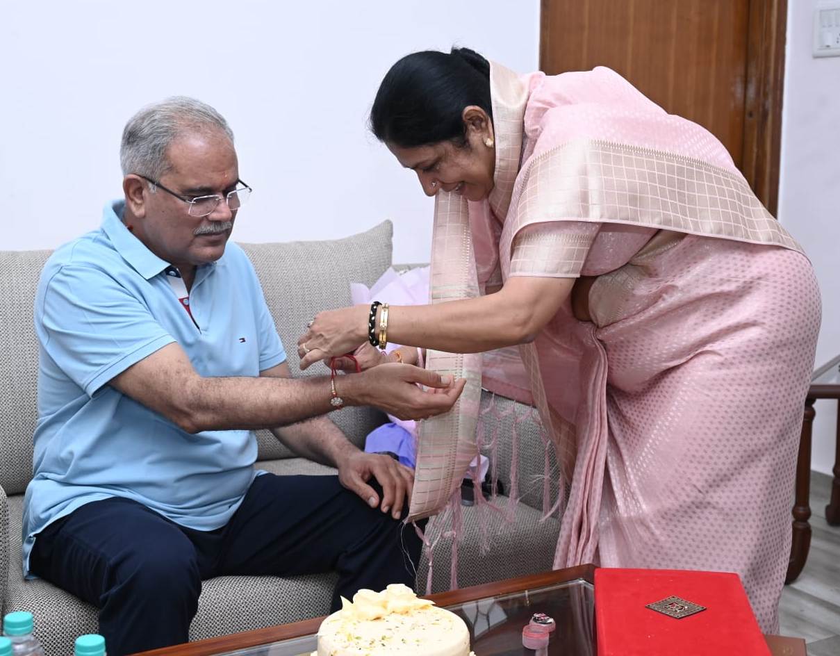 रायपुर । मुख्यमंत्री श्री भूपेश बघेल को रक्षाबंधन के पावन पर्व पर आज शाम यहां उनके निवास कार्यालय में धरसींवा विधायक श्रीमती अनिता योगेन्द्र शर्मा ने राखी बांधी।