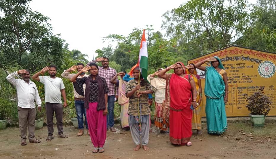 आजादी के अमृत महोत्सव के तहत हर घर झंडा अभियान में मनरेगा मजदूर सहित आम नागरिक फहरा रहे तिरंगा
