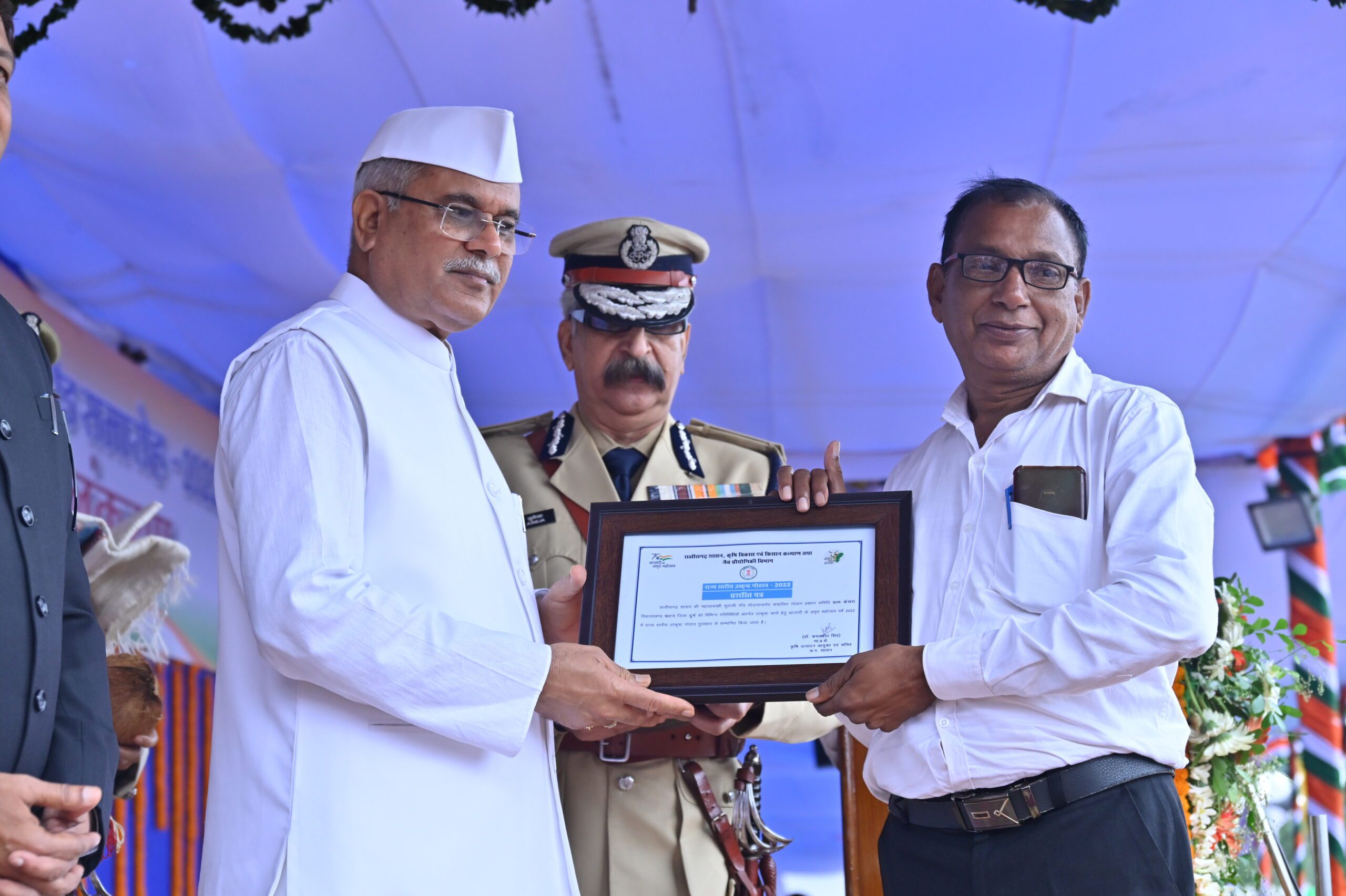 क्रमशः सर्वश्री कनक सोनी, तिलक वर्मा और विष्णु साहू ने अपने-अपने गौठान की तरफ से यह सम्मान ग्रहण किया।सुराजी गांव के अंतर्गत राज्य स्तरीय गोधन न्याय सेल में योजना के संचालन, क्रियान्वयन और समन्वय में उत्कृष्ट कार्य के लिए चार अधिकारियों को भी सम्मानित किया गया। इनमें कृषि विभाग के संयुक्त संचालक श्री रामलखन खरे, ओएसडी डॉ. मौसम मेहरा, सहायक संचालक श्री चंदन राय और चिप्स (CHIPS) के वरिष्ठ सलाहकार श्री नीलेश सोनी शामिल हैं। मुख्यमंत्री ने इन्हें प्रशस्ति पत्र और स्मृति चिन्ह प्रदान कर सम्मानित किया।