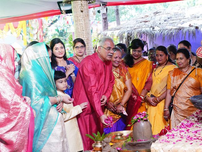 त्योहार के लिए मुख्यमंत्री निवास को तिजहारिन महिलाओं का मायका बना दिया गया था। मुख्यमंत्री भूपेश बघेल और उनकी पत्नी मुक्तेश्वरी बघेल ने कांग्रेस की महिला सांसदों-विधायकों और पूरे प्रदेश से आई माताओं बहनों के साथ भगवान शिव, नंदी बैल और चुंकिया-पोरा की पूजा की और प्रदेश की खुशहाली के लिए कामना की।