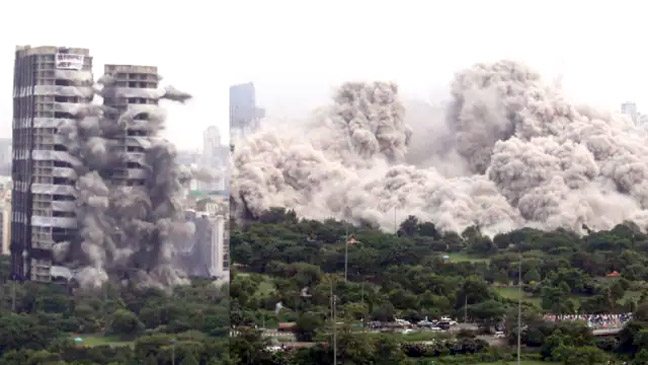 नोएडा। नोएडा में सुपरटेक का ट्विन टॉवर जमींदोज हो चुका है। आपको बता दें कि विस्फोटों के जरिए अवैध रूप से बनाए गए 100 मीटर ऊंचे ट्विन टॉवर को चंद सेकंड में ‘वाटरफॉल इम्प्लोजन’ तकनीक से ढहा दिया गया। इसके बाद एडिफिस, जेट डिमोलिशन, सीबीआरआई और नोएडा के अधिकारियों की टीम ने आसपास की इमारतों का ढांचागत विश्लेषण शुरू किया। ट्विन टावर के जमींदोज होने की वजह से आस-पास की हाउसिंग सोसाइटियों को कोई नुकसान नहीं हुआ है। लेकिन धूल का गुब्बार काफी देर तक आसमान में दिखाई दिया। ऐसे में धूल को स्थिर करने के लिए पानी को स्प्रे करने के लिए एंटी-स्मॉग गन का इस्तेमाल किया गया।