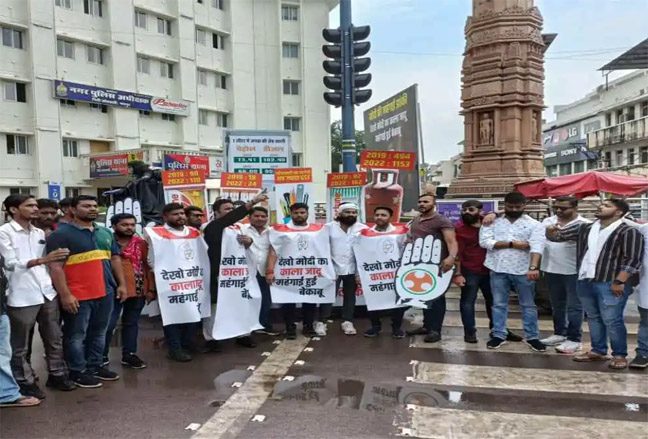 रायपुर. छत्तीसगढ़ की राजधानी रायपुर में युवा कांग्रेस द्वारा मोदी की महंगाई की झांकी निकाली गई. इस झांकी में तमाम तरीके की वस्तुओं को प्रदर्शित करके उनके वर्तमान मूल्य और पिछले कुछ वर्षों में किस तरीके से मूल्य में वृद्धि हुई है उन कीमतों को लिखकर शहर में झांकी निकाली. जो शहीद स्मारक भवन से लेकर घड़ी चौक होते हुए कोतवाली चौक में समाप्त हुई.
