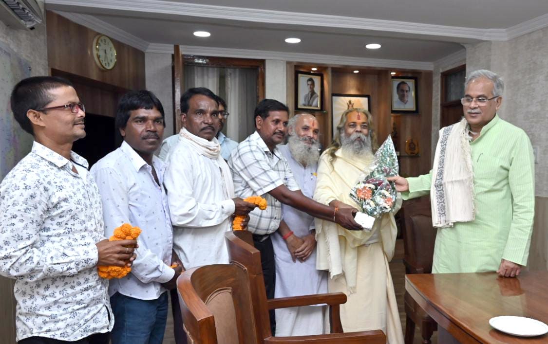 रायपुर मुख्यमंत्री श्री भूपेश बघेल से उनके निवास कार्यालय में गौ सेवा आयोग के अध्यक्ष महंत श्री राम सुंदर दास जी के नेतृत्व में राजमिस्त्री कल्याण संघ जांजगीर के प्रतिनिधि मंडल ने सौजन्य मुलाकात की। प्रतिनिधिमंडल ने मुख्यमंत्री को राजमिस्त्री कल्याण संघ द्वारा आयोजित किए जा रहे विश्वकर्मा पूजन कार्यक्रम में शामिल होने का न्योता दिया।