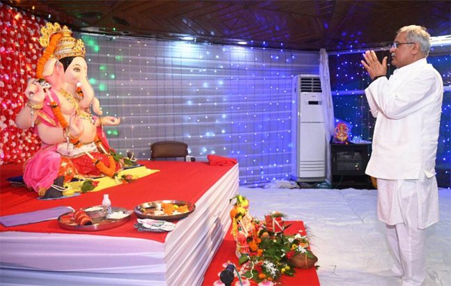 उल्लेखनीय है कि मुख्यमंत्री आज हिमाचल प्रदेश के दौरे पर थे। वहां से रात्रि में वे रायपुर लौटे। इसके पहले आज शाम मुख्यमंत्री श्री बघेल की धर्मपत्नी श्रीमती मुक्तेश्वरी बघेल और मुख्यमंत्री के परिजनों ने विधि विधान के साथ मुख्यमंत्री निवास में भगवान गणेश की प्रतिमा की स्थापना की।