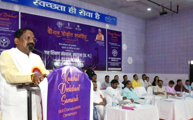 अम्बिकापुर  । कौशल विकास एवं उद्यमशीलता मंत्रालय भारत सरकार के तत्वावधान में जनशिक्षण संस्थान द्वारा शनिवार को राजमोहनी देवी भवन में कौशल दीक्षांत समारोह का आयोजन किया गया। समारोह के मुख्य अतिथि छत्तीसगढ़ शासन के खाद्य, नागरिक आपूर्ति एवं उपभोक्ता संरक्षण मंत्री श्री अमरजीत भगत तथा विशिष्ट अतिथियों के द्वारा विभिन्न विषयों में कौशल प्राप्त प्रशिक्षणार्थियों को प्रमाण पत्र प्रदान किया गया। समारोह का शुभारंभ माँ सरस्वती के छायाचित्र के समक्ष दीप प्रज्ज्वलित कर किया गया।