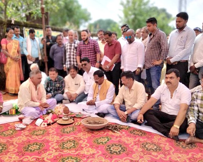 खाद्य मंत्री अमरजीत भगत ने किया पूर्व विधायक की मूर्ति स्थापना के लिए भूमिपूजन