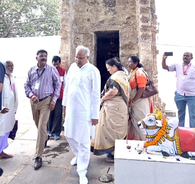 रायपुर । छत्तीसगढ़ ऐसी पावन धरती है जहां एक बेजुबान जानवर को उसकी वफादारी के लिए देवता का दर्जा दिया जाता है और प्रदेश के मुखिया खुद इस गहरी लोकपरम्परा के सम्मान में सिर नवाते हैं। इसी की बानगी आज दिखी जब मुख्यमंत्री भूपेश बघेल ने अपने बालोद जिले के भेंट मुलाकात कार्यक्रम के दूसरे दिन की शुरुआत खपरी स्थित कुकुरदेव मन्दिर में पूजा अर्चना से की। आस्था और आश्चर्य का अद्भुत संगम कुकुरदेव मन्दिर, मानव-पशु प्रेम की अनोखी मिसाल पेश करता है। यहां एक स्वामिभक्त कुत्ते की समाधि है जो लोकमान्यता के अनुसार अपने मालिक के प्रति आखिरी सांस तक वफादार रहा । मुख्यमंत्री ने कुकुरदेव मन्दिर में पूजा अर्चना कर प्रदेश की सुख समृद्धि और खुशहाली की कामना की। मुख्यमंत्री ने मंदिर में रुद्राक्ष के पौधे का रोपण किया। उन्होंने मन्दिर के पुजारियों को वस्त्र प्रदान किये।