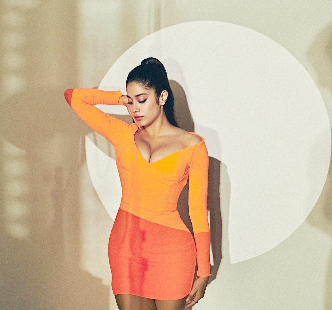 जान्हवी कपूर हर एक लुक में फिगर फ्लॉन्ट करती दिखती हैं, हाल ही में भी उन्होंने एक ऐसा ही बोल्ड फोटोशूट करा डाला, जिसमें उनका सेक्सी लुक फैंस को दीवाना बना रहा है। जान्हवी ने अपने लुक में बहुत ही अट्रैक्टिव लग रही है। जान्हवी ने ऑरेंज कलर की बॉडीकॉन ड्रेस पहनी है, उनके लुक में बोल्डनेस का तड़का दिखाई दिया।