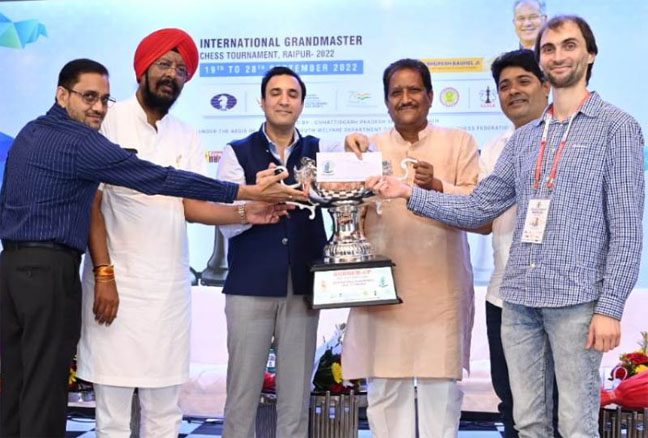 गौरतलब है कि मुख्यमंत्री श्री भूपेश बघेल के निर्देश पर अखिल भारतीय शतरंज महासंघ, खेल एवं युवा कल्याण विभाग एवं छत्तीसगढ़ ओलंपिक एसोसिएशन के मार्गदर्शन व संरक्षण में छत्तीसगढ़ प्रदेश शतरंज संघ द्वारा छत्तीसगढ़ चीफ मिनिस्टर ट्रॉफी इंटरनेशनल ग्रैंडमास्टर्स चेस टूर्नामेंट का आयोजन किया जा रहा है। छत्तीसगढ़ चीफ मिनिस्टर ट्रॉफी इंटरनेशनल ग्रैंडमास्टर्स चेस टूर्नामेंट में भारत के 21 राज्यों के शतरंज खिलाड़ी सहित यूएसए रूस, यूक्रेन, जॉर्जिया, यूएसए, कजाकिस्तान, मंगोलिया, पोलैंड, वियतनाम, कोलंबिया, ईरान, श्रीलंका, किर्गिस्तान, बांग्लादेश, जिम्बाब्वे व नेपाल के शतरंज के महारथी और खिलाड़ी पहुंचे हैं। इस इंटरनेशनल टूर्नामेंट में हिस्सा लेने पहुंचे खिलाड़ियों में 16 ग्रैंड मास्टर, 27 इंटरनेशनल मास्टर, 03 वीमेन ग्रैंड मास्टर, 11 वीमेन इंटरनेशनल मास्टर, 14 फीडे मास्टर, 375 इंटरनेशनल रेटेड प्लेयर्स समेत अन्य वर्गों के खिलाड़ी शामिल थे।