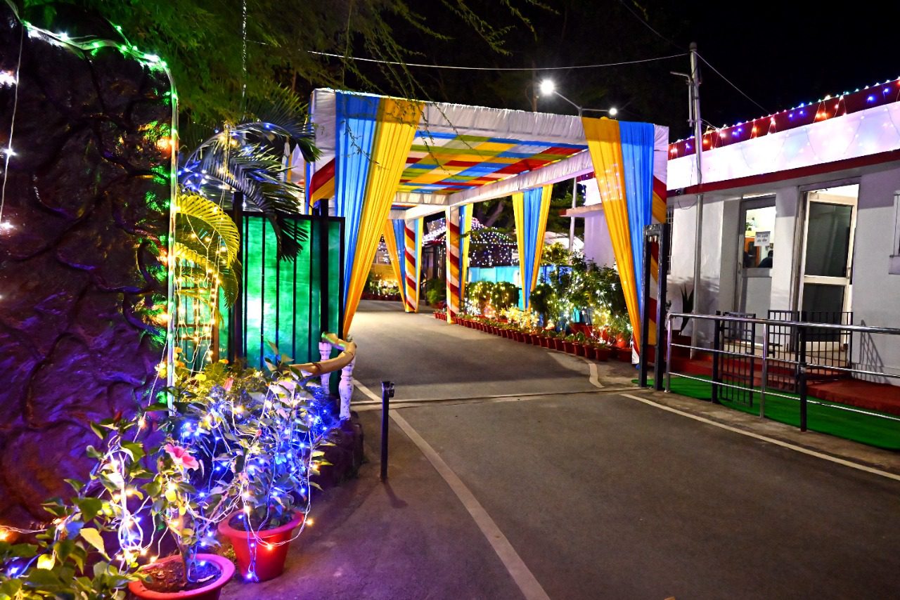 मुख्य द्वार में एलईडी लाइट से शुभ देवारी तिहार लिखा हुआ और दोनों गेट में दिया का प्रतीक बनाया गया है, जो बहुत ही आकर्षक प्रतीत हो रहा है। वहीं प्रवेश द्वार के बाद छोटे-छोटे पेड़ पौधों को झालर लाइट से और रंग-बिरंगे कपड़ों से प्रवेश मार्ग को सजाया गया है। निवास के अंदर वाले गेट में भी एलईडी लाइट से बना दिया का प्रतीक भी मनमोहक दिखाई दे रहा है।
