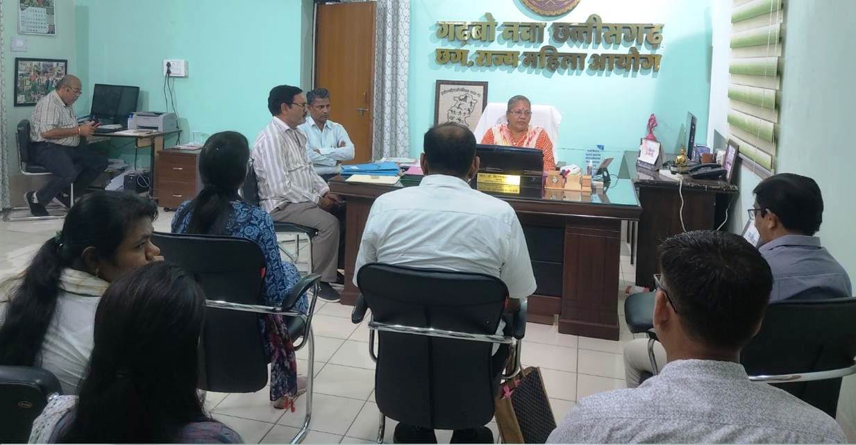 रायपुर । राज्य महिला आयोग की अध्यक्ष डॉ. किरणमयी नायक ने आज शास्त्री चौक स्थित राज्य महिला आयोग कार्यालय में सुनवाई की। आयोग द्वारा पिछले सुनवाई में आवेदिकागणों को स्वच्छ भारत मिशन के कंसल्टेंट कम्पनी की पूर्ण जानकारी आयोग को देने निर्देशित किया गया था, जिस पर आवेदिकागणों द्वारा अपने उच्च अधिकारियों की जानकारी दिया गया था। आज सुनवाई में स्वच्छ भारत मिशन के प्रबंधक उपस्थित हुए। आयोग की पिछली सुनवाई में स्वच्छ भारत मिशन के अधिकारी के विरुद्ध 7 से अधिक महिलाओं ने आयोग के समक्ष मानसिक प्रताड़ना की शिकायत की थी। आज की सुनवाई में स्वच्छ भारत मिशन के प्रबंधक सहित आवेदिकागणों के साथ 18 लोग भी उपस्थित रहे।