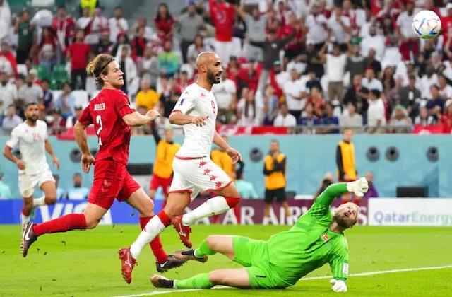 अल रैयान। ट्यूनीशिया ने शानदार चौतरफा प्रदर्शन की बदौलत फीफा विश्व कप 2022 के ग्रुप-डी मुकाबले में डेनमार्क के साथ शून्य गोल का ड्रॉ खेला। इस ड्रॉ के बाद 10वीं रैंकिंग की डेनमार्क और 30वीं रैंकिंग की ट्यूनीशिया ने एक-एक अंक बांट लिया। ट्यूनीशिया ने फीफा विश्व कप के इतिहास में पहली बार किसी यूरोपीय टीम के खिलाफ अंक अर्जित किये हैं। ट्यूनीशिया के पास यह मैच जीतकर पूरे तीन अंक अर्जित करने का अवसर था लेकिन हाफ टाइम से ठीक पहले डेनमार्क के गोलकीपर कैस्पर शमीकेल ने गोल रोककर उन्हें इस अवसर से वंछित किया। ट्यूनीशियाई खिलाड़ी ईसाम जेबाली ने विपक्षी टीम के डी में प्रवेश करके गोल करने का प्रयास किया जिसे शमीकेल ने सफलतापूर्वक रोक लिया।