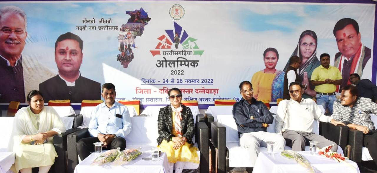 दंतेवाड़ा । जिला मुख्यालय स्थित शासकीय हाई स्कूल मैदान में आयोजित तीन दिवसीय जिला स्तरीय छत्तीसगढि़या ओलंपिक खेल का आज समापन हुआ। इस अवसर पर मुख्य अतिथि के रूप में जिला पंचायत अध्यक्ष सुश्री तुलिका कर्मा, राजीव युवा मितान क्लब जिला समन्वयक श्री सलीम रजा उस्मानी, अपर कलेक्टर श्री संजय कन्नौजे, संयुक्त कलेक्टर श्री सुरेन्द्र ठाकुर, खेल अधिकारी श्री शिवनाथ बघेल, सहित संबंधित अधिकारीगण मौजूद रहे।