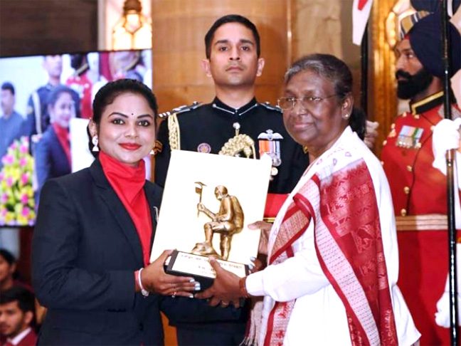 रायपुर । मुख्यमंत्री भूपेश बघेल ने छत्तीसगढ़ की पर्वतारोही सुश्री नैना सिंह धाकड़ को राष्ट्रपति द्वारा सम्मानित किए जाने पर बधाई और शुभकामनाएं दी है। पर्वतारोही सुश्री नैना सिंह धाकड़ को राष्ट्रपति श्रीमती द्रौपदी मुर्मू ने तेजनिंग नोर्गे राष्ट्रीय पुरस्कार के तहत लैंड एडवेंचर पुरस्कार से सम्मानित किया है।