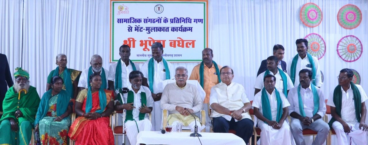 मुख्यमंत्री श्री भूपेश बघेल ने आज संध्या गरियाबंद के सर्किट हाउस में विभिन्न समाज एवं सामाजिक संगठनों के प्रतिनिधि मण्डल से भेंट-मुलाकात की। मुख्यमंत्री ने इस मौके पर एक-एक कर सभी समाज एवं संगठनों के प्रतिनिधियों से सामाजिक गतिविधियों के संबंध में जानकारी लेने के साथ ही उनसे शासकीय योजनाओं एवं कार्यक्रमों के क्रियान्वयन के संबंध में भी फीडबैक लिया।