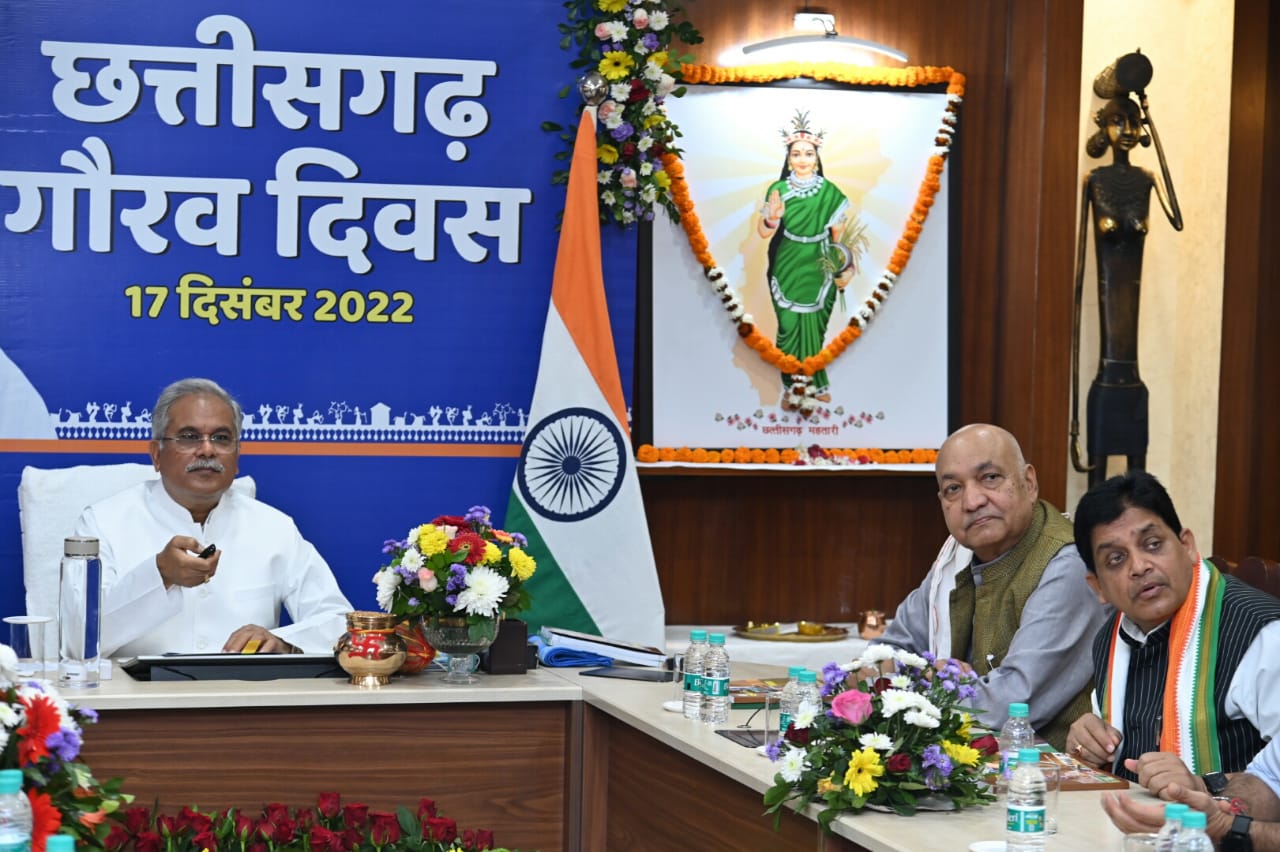 रायपुर  । मुख्यमंत्री भूपेश बघेल ने छत्तीसगढ़ गौरव दिवस के अवसर पर मुख्यमंत्री निवास में आयोजित वर्चुअल कार्यक्रम में 33 करोड़ 96 लाख रूपए की लागत के 14 कार्यो का भूमिपूजन और लोकार्पण किया। उन्होंने इनमें से 30 करोड़ 13 लाख रूपए की लागत के 12 कार्यो का भूमिपूजन और 3.83 करोड़ रूपए की लागत के दो कार्यो का लोकार्पण किया। कार्यक्रम में कृषि मंत्री रविन्द्र चौबे, नगरीय प्रशासन एवं विकास मंत्री डॉ.शिवकुमार डहरिया, मुख्यमंत्री के सलाहकार राजेश तिवारी, छत्तीसगढ़ राज्य खाद्य नागरिक आपूर्ति निगम के अध्यक्ष रामगोपाल अग्रवाल, मुख्य सचिव अमिताभ जैन सहित वरिष्ठ अधिकारी उपस्थित थे।