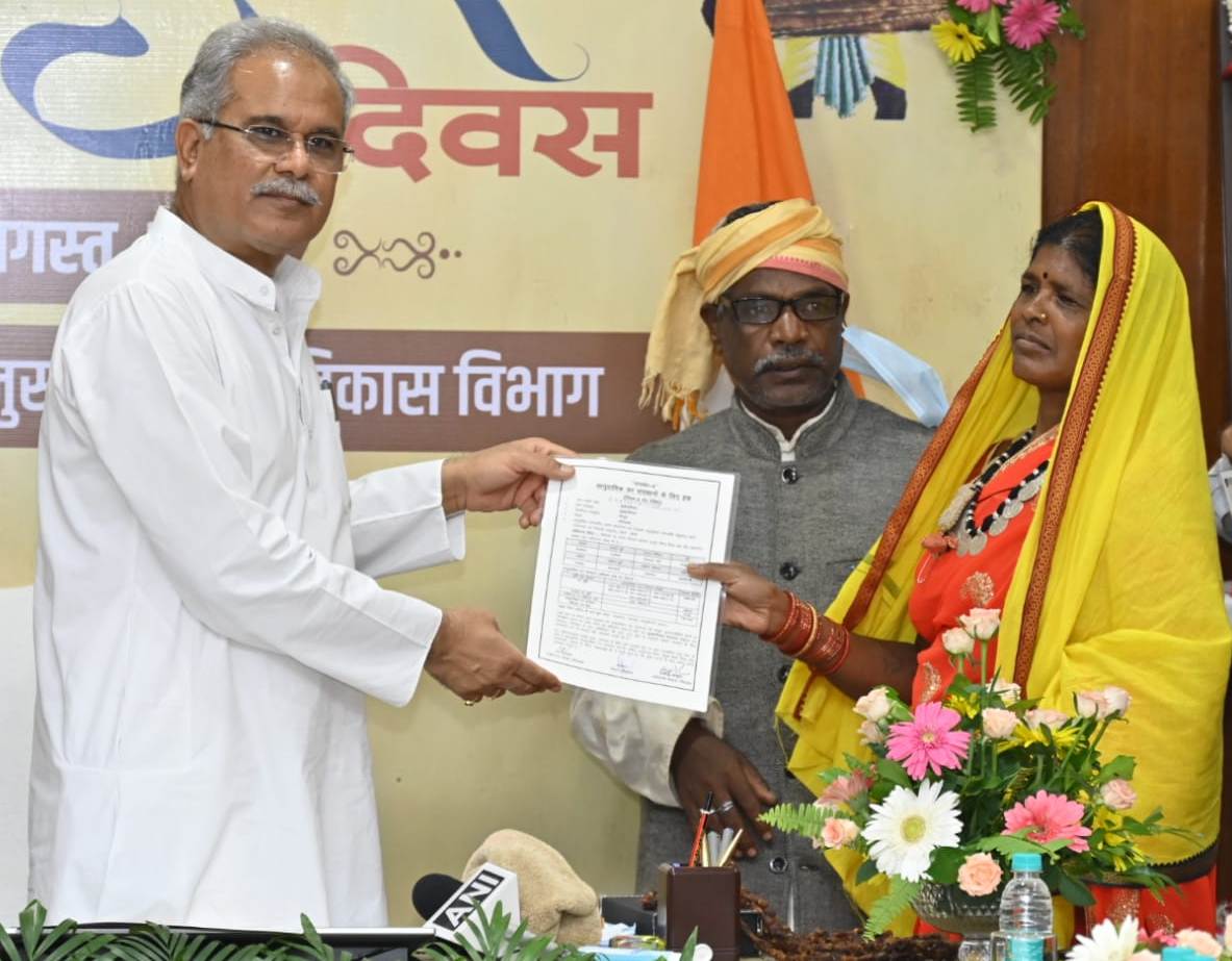 मुख्यमंत्री श्री भूपेश बघेल की सरकार की वन अधिकार पत्रों का वितरण की महत्वकांक्षी योजना है। राज्य शासन द्वारा स्थानीय वन निवासी सामुदायों के विभिन्न वनाअधिकारों को मान्यता दिए जाने की दिशा में प्रतिबद्धतापूर्वक सतत् प्रयास किए जा रहे है, ताकि वन अधिकार अधिनियम 2006 में वर्णित विभिन्न प्रकार के वनाधिकार उन्हें प्राप्त हो सके। अधिनियम के अनुसार वनभूमि पर अनुसूचित जाति और अन्य परंपरागत वन निवासी आवेदक द्वारा कब्जे का दावा करने के लिए 13 दिसंबर 2005 कट ऑफ डेट निर्धारित है। अन्य परंपरागत वन निवासी आवेदक के मामले में कट ऑफ डेट पूर्व से ही तीन पीढ़ियों (75 वर्ष) से संबंधित ग्राम, वन भूमि में निवासरत् होना आवश्यक है। राज्य शासन की पहल से स्थानीय वन निवासी समुदायों के लिए संबंधित ग्राम सभाओं को सामुदायिक वन संसाधन अधिकार को मान्यता दी जा रही हैं। राज्य के शहरी क्षेत्रों में विभिन्न वन अधिकार पत्रों का वितरण किया जा रहा हैं।