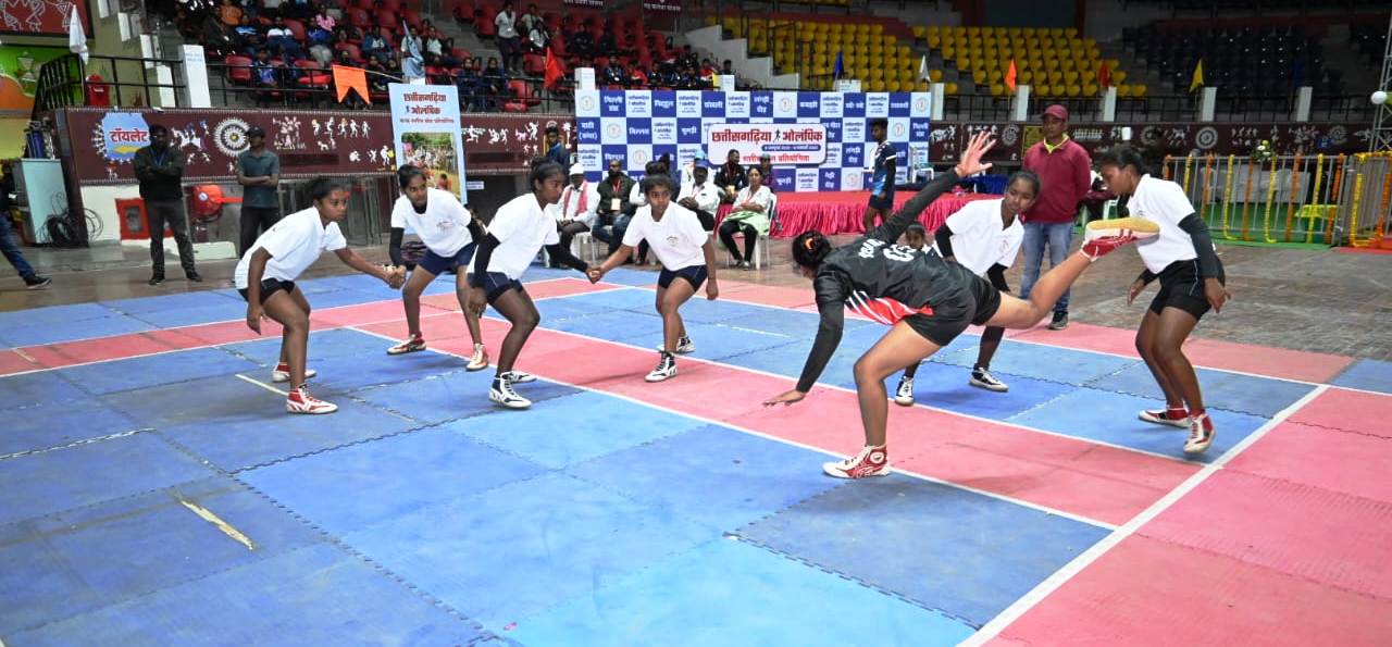 छत्तीसगढ़िया ओलपिंक के राज्यस्तरीय कार्यक्रम का शुभारंभ मुख्यमंत्री श्री भूपेश बघेल द्वारा आज राजधानी रायपुर स्थित सरदार बलबीर सिंह जुनेजा इंडोर स्टेडियम में किया गया। राज्य स्तरीय छत्तीसगढ़िया ओलंपिक खेलों का आयोजन राजधानी रायपुर के विभिन्न खेल परिसरों में किया जा रहा है। जिनमें सरदार बलबीर सिंह जुनेजा इंडोर स्टेडियम, आउटडोर स्टेडियम, माधवराव सप्रे शाला मैदान एवं स्वामी विवेकानंद स्टेडियम कोटा में विभिन्न खेल विधाओं के प्रतिस्पर्धाएं आयोजित की जा रही हैं। इस कार्यक्रम में राज्य के सभी संभागों के लगभग 2 हजार से अधिक प्रतिभागी अपनी सहभागिता निभा रहे हैं। सरदार बलबीर सिंह जुनेजा इंडोर स्टेडियम में कबड्डी, फुगड़ी, भंवरा और बिल्लस खेल का आयोजन हुआ। सभी प्रतिस्पर्धाएं तीन आयु वर्गों में आयोजित की गईं। जिसमें 18 वर्ष से कम उम्र के प्रतिभागी, 18 से 40 वर्ष तक और 40 वर्ष से अधिक आयुवर्ग में महिला एवं पुरूष वर्ग के प्रतिभागियों ने हिस्सा लिया।