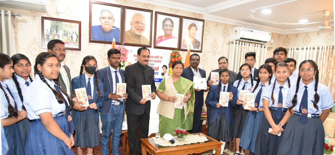 रायपुर राज्यपाल सुश्री अनुसुईया उइके ने राजभवन में स्कूली बच्चों की उपस्थिति में प्रधानमंत्री श्री नरेन्द्र मोदी जी द्वारा लिखित किताब ‘‘एक्जाम वारियर्स’’ का विमोचन किया। इस अवसर पर राज्यपाल सुश्री उइके ने अपने संक्षिप्त उद्बोधन में विद्यार्थियों को संबोधित करते हुए किताब के महत्वपूर्ण बिन्दुओं तथा इसके मूल विषय-वस्तु के बारे में रोचक ढंग से बताया। राज्यपाल ने कहा कि किताब में विद्यार्थियों एवं अभिभावकों के लिए भी 34 मंत्र दिये गये हैं, जो परीक्षा के समय होने वाले भय और तनाव के प्रबंधन में सहायक होंगे। उन्होंने कहा कि जब हम अनावश्यक तनाव लेते हैं तो काम बिगड़ते हैं। इसी प्रकार जब विद्यार्थी परीक्षा के दौरान तनाव लेते हैं, तो आसानी से हल होने वाले सवालों में भी अटक जाते हैं।
