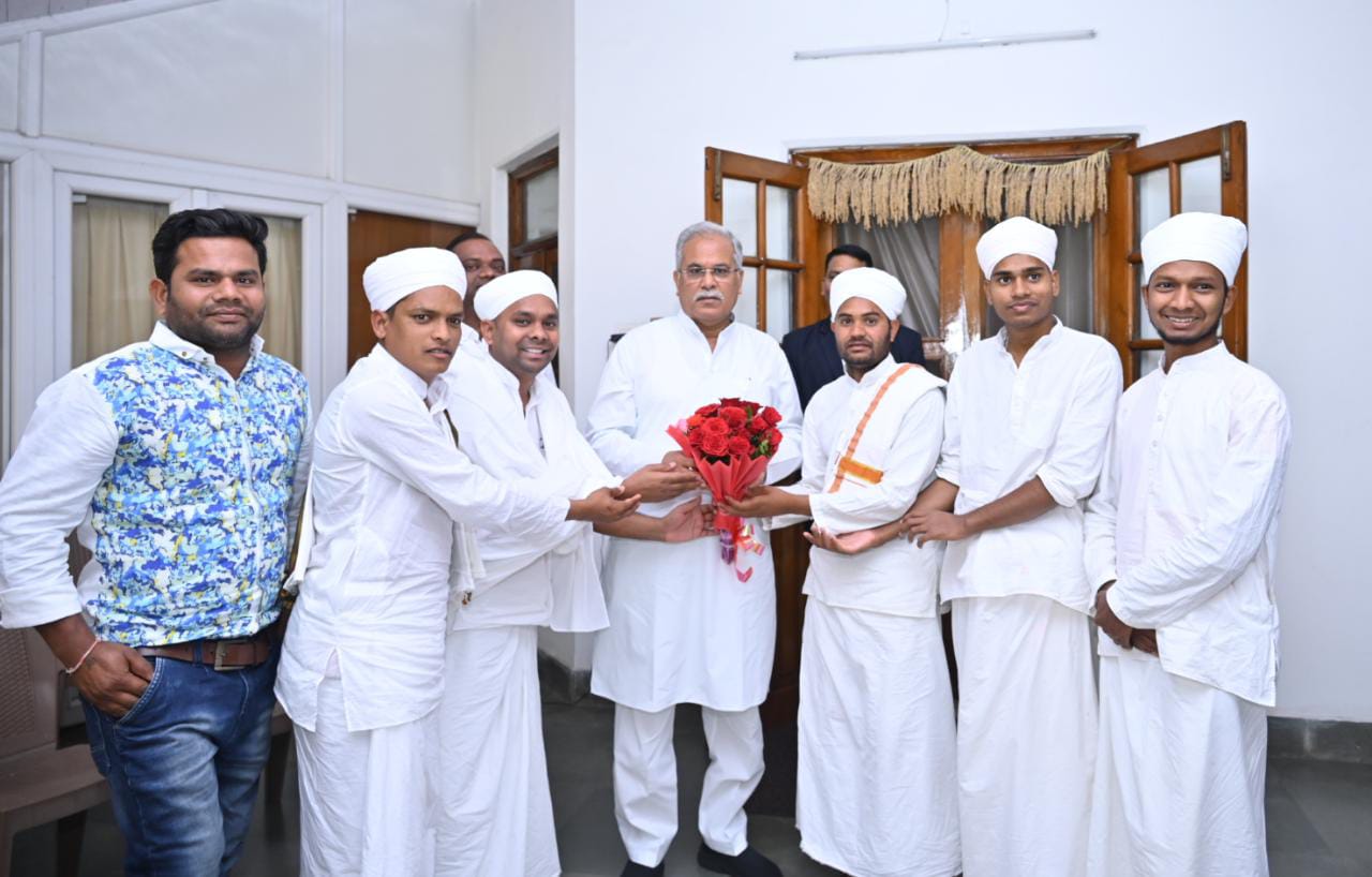 रायपुर । मुख्यमंत्री श्री भूपेश बघेल से आज उनके निवास कार्यालय में अखिल छत्तीसगढ़ कबीर पंथ के सदगुरु असंग आश्रम सोनपैरी के संत मण्डली ने सौजन्य मुलाकात की।