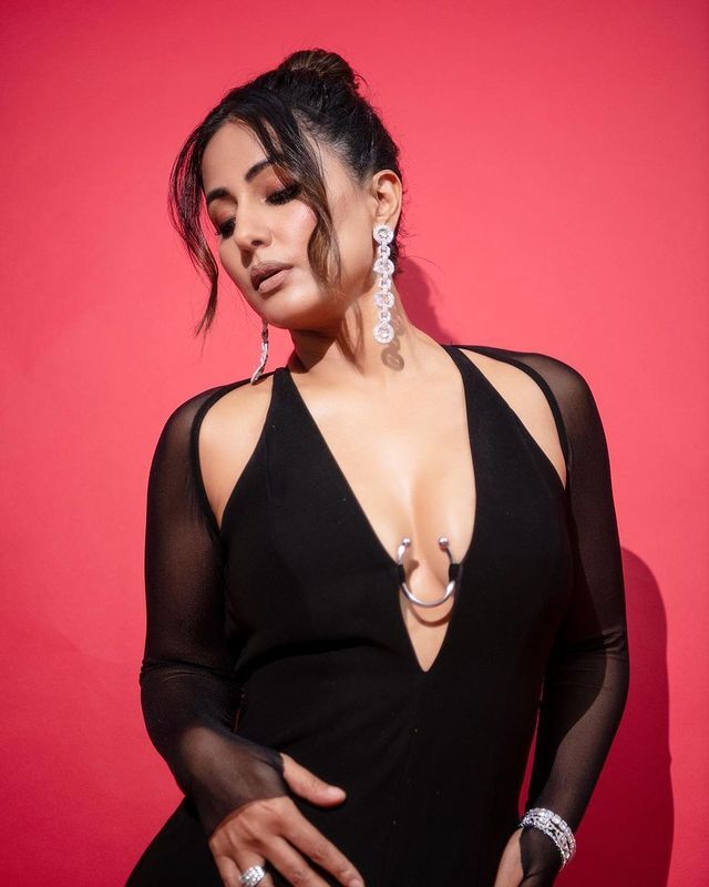ब्लैक थाई स्लिट गाउन में हिना खान ने लगाया बोल्डनेस का तड़का