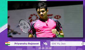 प्रियांशु ने अंतत: नेट पर नज़ाकत भरा खेल दिखाते हुए ताइपे के खिलाड़ी को गलती करने के लिये मजबूर किया और 21-18 से जीत अर्जित कर ली।