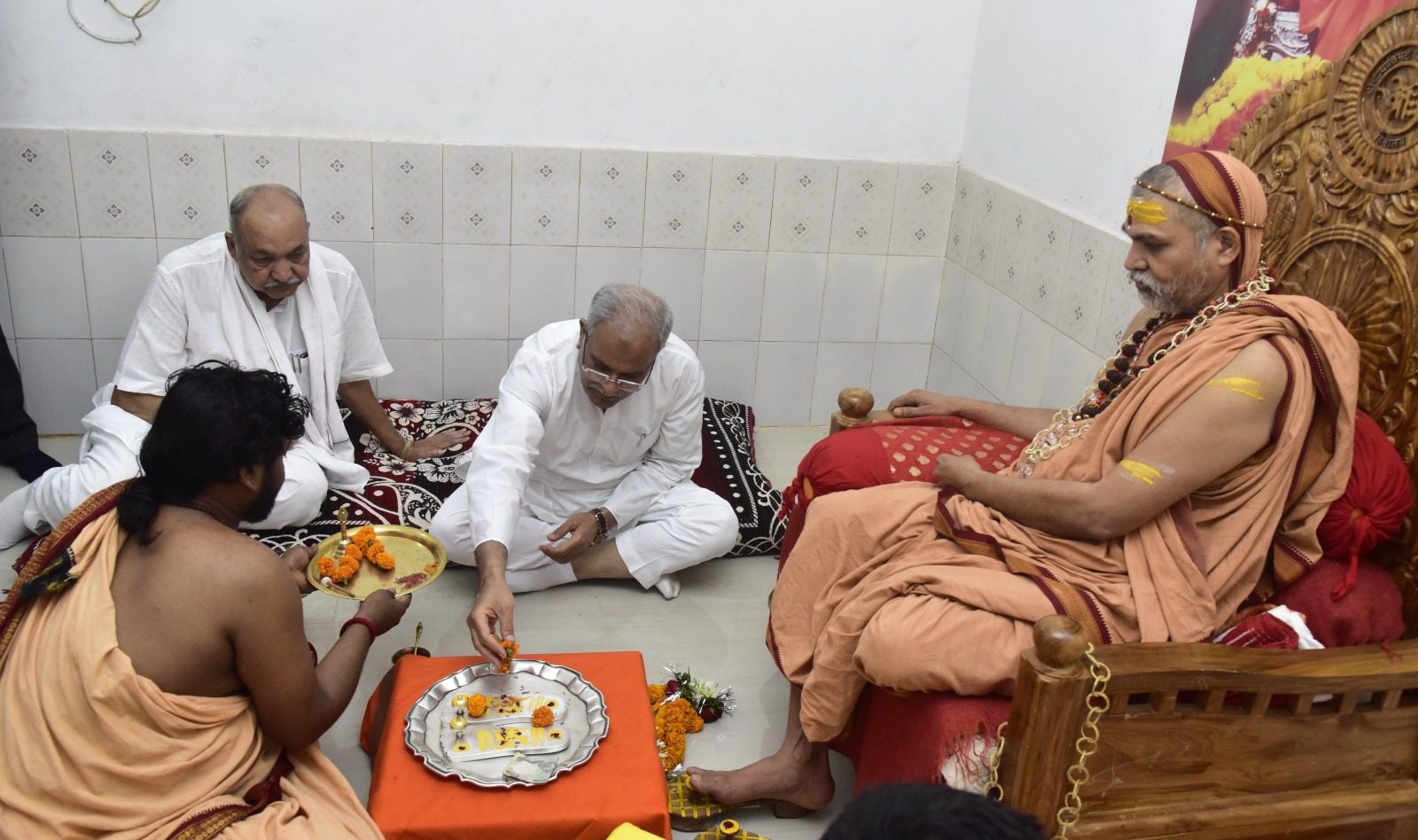 मुख्यमंत्री श्री बघेल ने जगतगुरु स्वामी अविमुक्तेश्वरानन्द सरस्वती महाराज से भेंट की और उनसे प्रदेश की सुख समृद्धि के लिए आशीर्वाद लिया। इस अवसर पर कृषि मंत्री श्री रविन्द्र चौबे, विधायक बेमेतरा श्री आशीष कुमार छाबड़ा उपस्थित थे।
