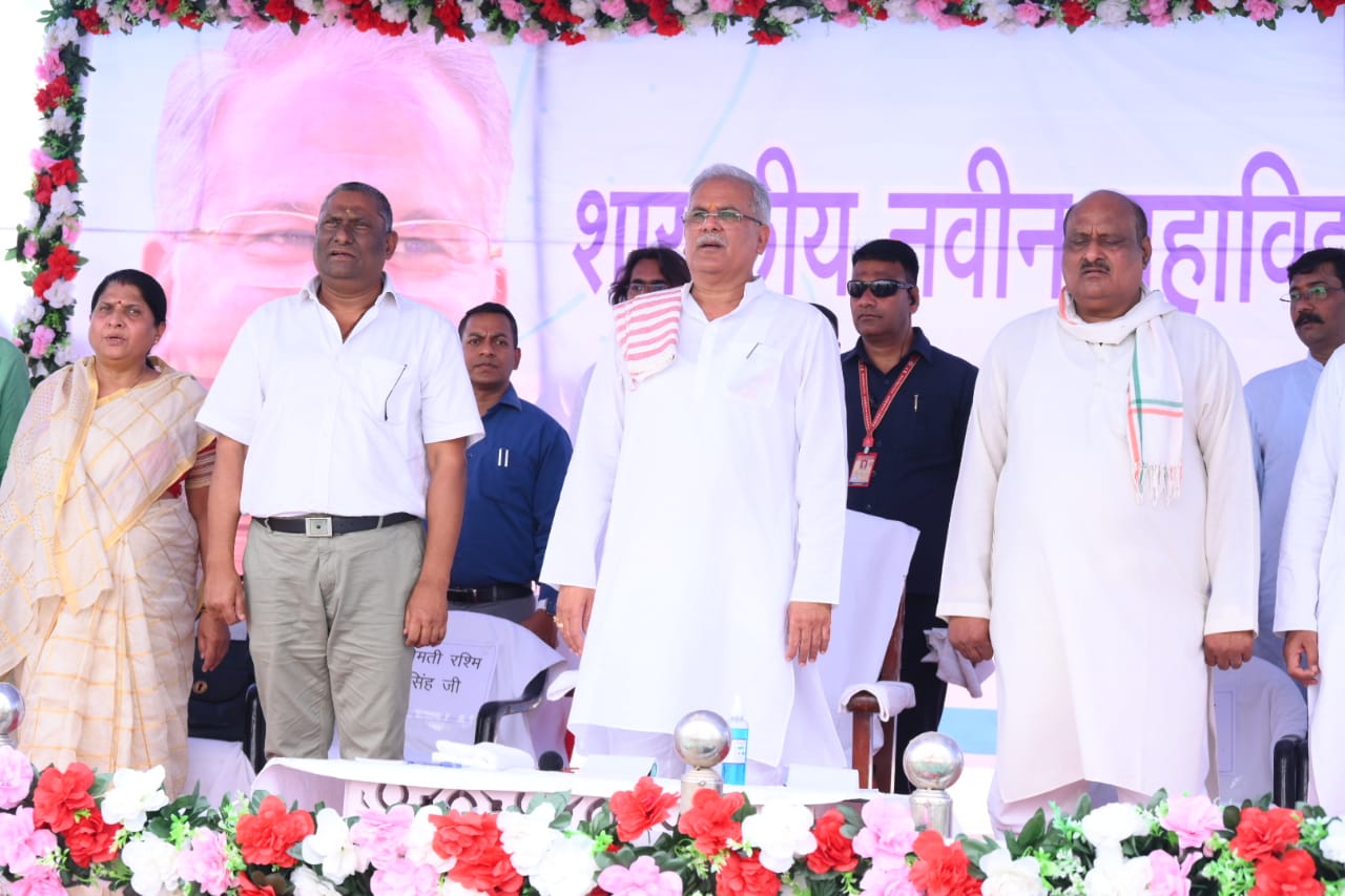 रायपुर मुख्यमंत्री श्री भूपेश बघेल ने आज बिलासपुर जिले के बेलतरा विधानसभा में शासकीय नवीन महाविद्यालय भवन निर्माण के लिए भूमिपूजन किया। इस अवसर पर राजस्व मंत्री एवं जिले के प्रभारी मंत्री श्री जयसिंह अग्रवाल, संसदीय सचिव श्रीमती रश्मि आशीष सिंह, अध्यक्ष अपेक्स बैंक श्री बैजनाथ चंद्राकर, अध्यक्ष जिला पंचायत श्री अरुण चौहान, पर्यटन मंडल के अध्यक्ष श्री अटल श्रीवास्तव, मुख्यमंत्री के सलाहकार श्री प्रदीप शर्मा, उच्च शिक्षा विभाग के अतिरिक्त संचालक श्री प्रवीण पांडे सहित अन्य जनप्रतिनिधि एवं अधिकारी गण उपस्थित रहे।