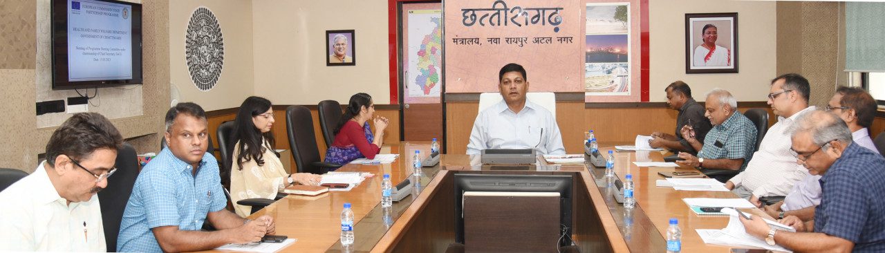 रायपुर मुख्य सचिव श्री अमिताभ जैन की अध्यक्षता में आज यहां मंत्रालय महानदी भवन में यूरोपियन संघ राज्य साझेदारी कार्यक्रम संचालन समिति की बैठक सम्पन्न हुई। बैठक में इ.सी.एस.पी.पी अंतर्गत संचालित खातों में उपलब्ध राशि के बेहतर उपयोग के संबंध में विचार विमर्श किया गया। बैठक में लोक स्वास्थ्य एवं परिवार कल्याण तथा चिकित्सा शिक्षा विभाग की अपर मुख्य सचिव श्रीमती रेणु जी पिल्ले भी मौजूद थी।