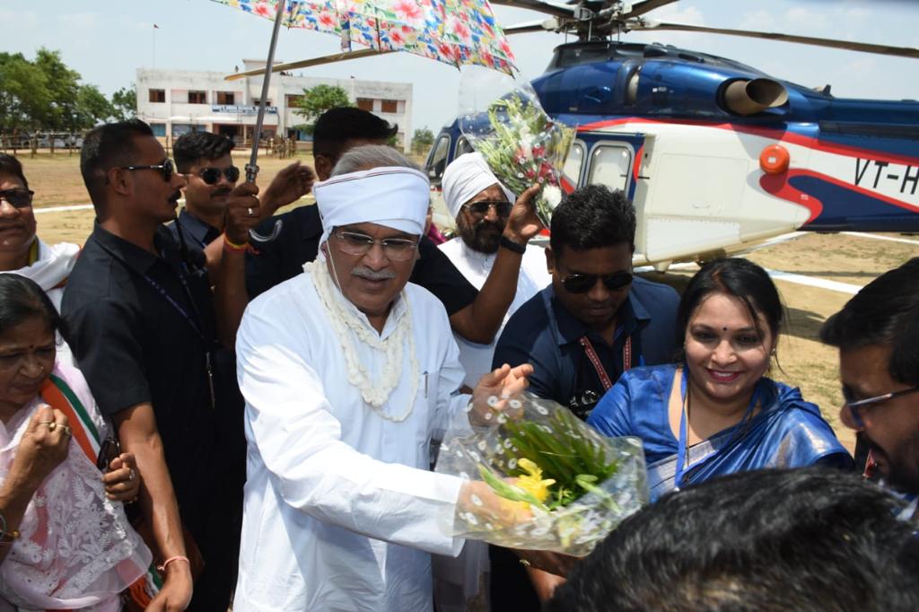 मुख्यमंत्री श्री बघेल ने यहां हथकरघा और सिलाई करने वाली महिलाओं के कार्यों का किया अवलोकन। मुख्यमंत्री ने महिला स्व सहायता समूह के उत्पादों का अवलोकन कर महिला समूहों से चर्चा की।