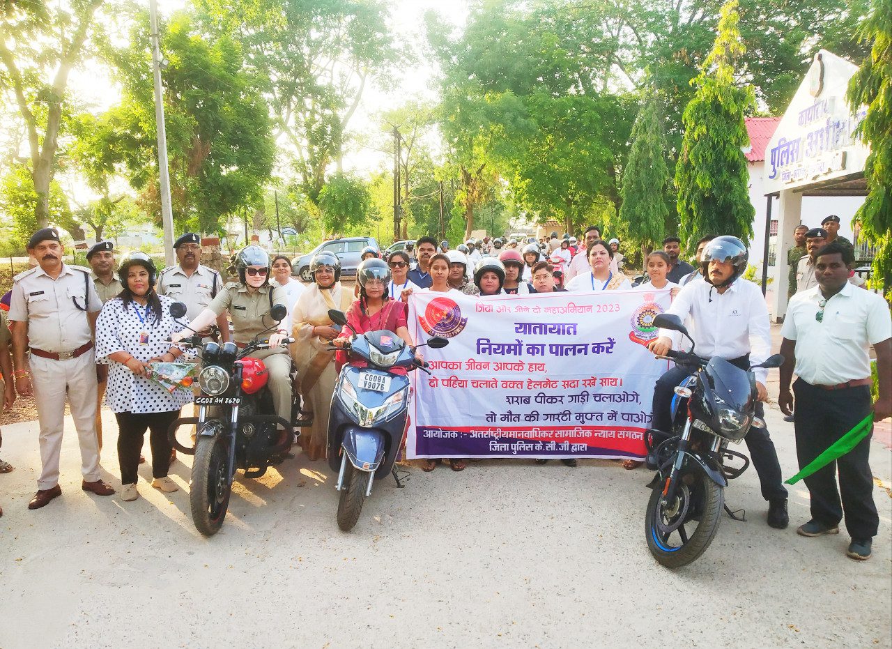 खैरागढ़ नवगठित जिला खैरागढ़-छुईखदान-गंडई में जनप्रतिनिधियों और जिला व पुलिस प्रशासन के नेतृत्व में अंतरराष्ट्रीय मानवाधिकार एवं सामाजिक न्याय संगठन इकाई खैरागढ़ ने मंगलवार को यातायात जागरूकता बाइक रैली निकाली। इस दौरान बाइक और स्कूटी में हेलमेट के साथ सवार होकर रैली का नेतृत्व विधायक यशोदा वर्मा, कलेक्टर गोपाल वर्मा और एस पी अंकिता शर्मा ने किया। बड़ी संख्या में महिलाएं, युवा, संगठन सदस्य, अधिकारी और नागरिक शामिल हुए।