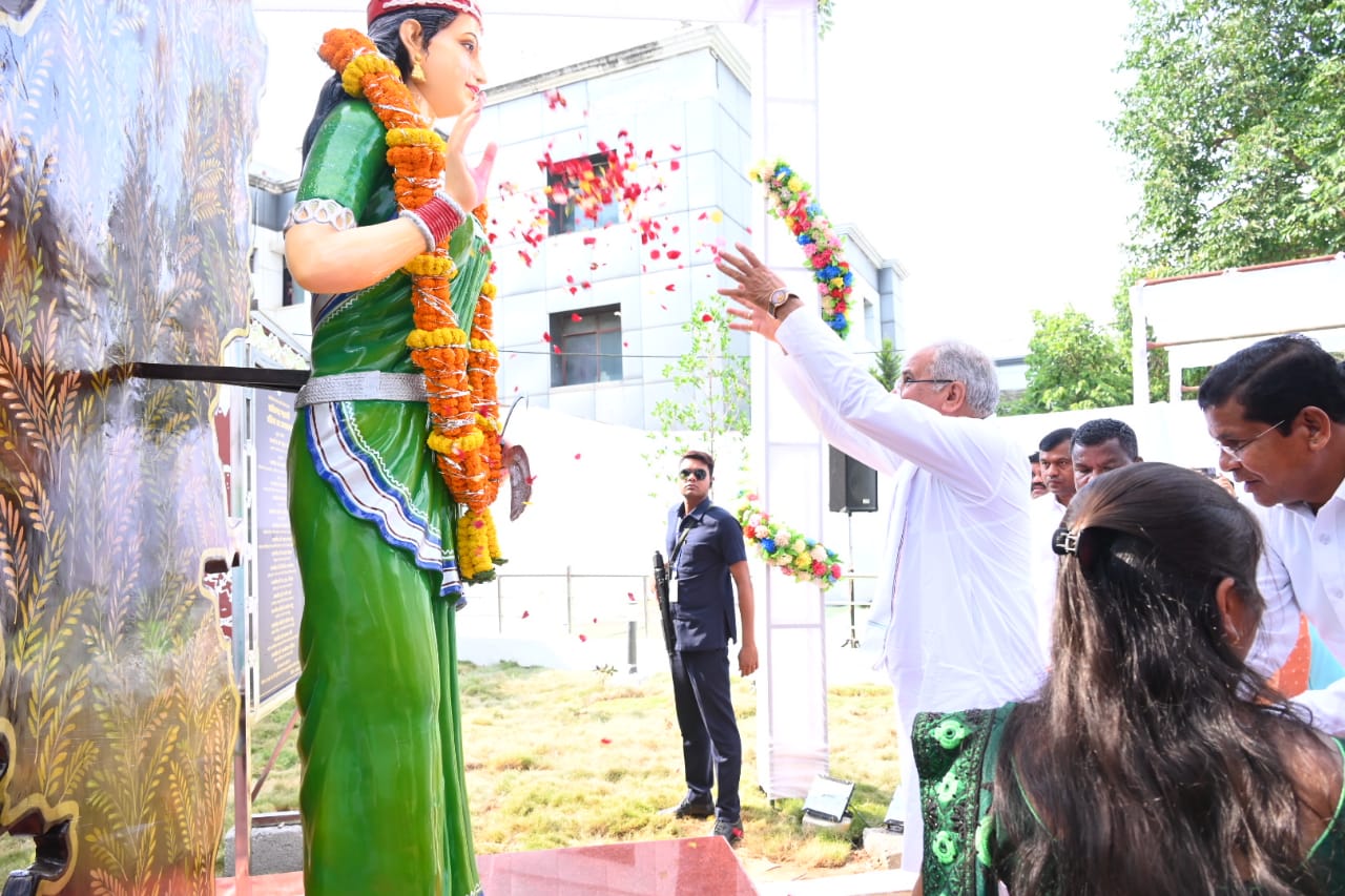 रायपुर । मुख्यमंत्री भूपेश बघेल ने जगदलपुर के कलेक्टर कार्यालय परिसर में छत्तीसगढ़ महतारी की प्रतिमा का अनावरण किया और पुष्पार्पित कर उन्हें नमन किया। संभाग का पहला जिला कार्यालय जहाँ छत्तीसगढ़ महतारी की प्रतिमा स्थापित की गई है। मुख्यमंत्री श्री बघेल ने प्रतिमा अनावरण के उपरांत कहा कि छत्तीसगढ़ की अस्मिता, स्वाभिमान और सम्मान की प्रतीक है छत्तीसगढ़ महतारी। उन्होंने कहा कि सभी जिलों में छत्तीसगढ़ महतारी की प्रतिमा लगाई जा रही है ताकि लोगों में अपनी संस्कृति को लेकर चेतना जागृत की जा सके।
