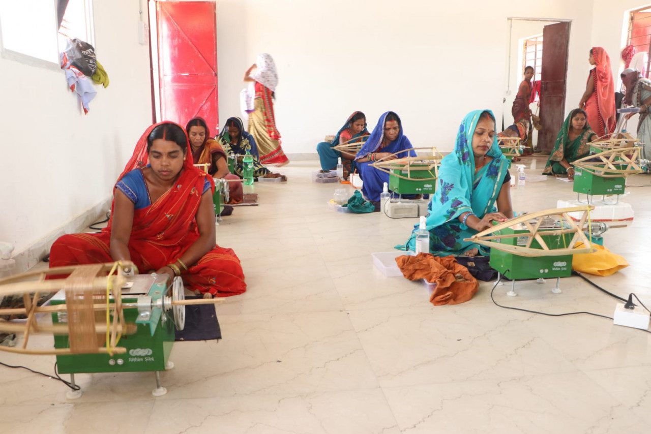 Home » समूह की महिलाएं ककुन से निकाल रही रेशम धागा