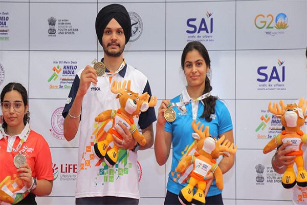 गौतम बुद्ध नगर। ओलंपियन मनू भाकर और अंतरराष्ट्रीय निशानेबाज सरबजोत शूटिंग सिंह ने मंगलवार को यहां खेलो इंडिया यूनिवर्सिटी गेम्स में 10 मीटर एयर पिस्टल मिश्रित टीम का स्वर्ण पदक जीत लिया। पंजाब यूनिवर्सिटी का प्रतिनिधित्व कर रहे मनू और सरबजोत ने फाइनल में दिल्ली विश्वविद्यालय के वरुण दुबे और विभूति भाटिया पर 16-2 से जीत दर्ज की। पंजाबी यूनिवर्सिटी के प्रदीप कौर सिद्धू और अमनप्रीत सिंह ने महर्षि दयानंद यूनिवर्सिटी के हर्षदीप सिंह गिल और शिखा नरवाल को 16-14 से हराकर कांस्य पदक जीता।