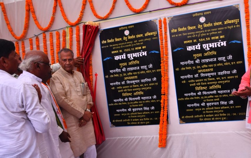 रायपुर लोक निर्माण एवं गृह मंत्री श्री ताम्रध्वज साहू ने आज बलरामपुर के विकासखण्ड रामचन्द्रपुर के ग्राम सनावाल में 21 करोड़ 04 लाख रूपए की लागत से निर्मित होने वाले अंरर्राज्यीय पुल निर्माण कार्य का शुभारंभ किया। इस अवसर पर उन्होंने क्षेत्रीय विधायक के मांग पर रामचन्द्रपुर में नवीन विश्राम गृह निर्माण की घोषणा की। इस दौरान मंत्री श्री साहू ने विभिन्न विभागों द्वारा लगाए गए विभागीय योजनाओं पर आधारित स्टालों का निरीक्षण किया।