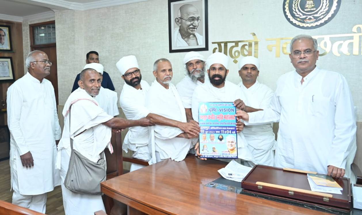 रायपुर मुख्यमंत्री श्री भूपेश बघेल से आज शाम राजधानी स्थित उनके निवास कार्यालय में सद्गुरू कबीर विश्व शांति मिशन, छत्तीसगढ़ संत संगठन के प्रतिनिधि मण्डल ने सौजन्य मुलाकात की। मुख्यमंत्री को प्रतिनिधि मण्डल द्वारा 18 जून को रायपुर स्थित मेकाहारा के अटल बिहारी वाजपेयी ऑडिटोरियम में आयोजित सद्गुरू कबीर स्मृति महोत्सव में बतौर मुख्य अतिथि के रूप में शामिल होने का आमंत्रण दिया गया।
