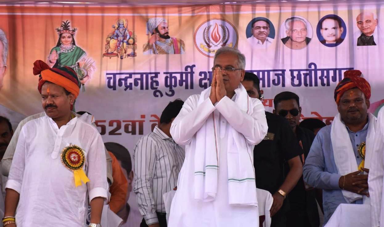 मुख्यमंत्री श्री बघेल ने आगे कहा कि राज्य को सशक्त और एक मजबूत राज्य बनाने के दिशा में हमने काम किया है। हर वर्ग के लोगों का विकास ही हमारा मुख्य ध्येय है। सबसे पहले किसानों का कर्जा माफ किया। साथ ही धान के साथ ही मक्का, गन्ना का समर्थन मूल्य में खरीदी के साथ-साथ पहली बार लघुधान्य कोदो, कुटकी, रागी की समर्थन मूल्य में खरीदी हुई। बीते चार सालों में छत्तीसगढ़ में किसानों की संख्या, धान का उत्पादन और फसलों का रकबा भी बढ़ा है। किसानों की आर्थिक स्थिति में सुधार हो रहा है। उन्होंने कहा कि न्याय योजनाओं तथा किसानों, महिलाओं, वनवासियों, युवाओं के हित में लिए गए फैसलों से लोगों के जीवन में बड़ा परिवर्तन दिख रहा है। उन्होंने कहा कि आने वाले धान खरीदी सीजन में प्रति एकड़ 20 क्विंटल धान खरीदी का निर्णय लिया है। इससे छत्तीसगढ़ के किसानों की स्थिति में और सकारात्मक सुधार देखने को मिलेगा। कार्यक्रम में चंद्रानाहूं कुर्मी समाज के प्रदेश अध्यक्ष एवं महासमुंद विधायक श्री विनोद चंद्राकर, बेमेतरा विधायक श्री आशीष छाबड़ा, पंडरिया विधायक श्रीमती ममता चंद्राकर, अपेक्स बैंक के अध्यक्ष श्री बैजनाथ चन्द्राकर सहित अनेक जनप्रतिनिधि एवं गणमान्य नागरिक और सामाजिक बंधु उपस्थित थे।