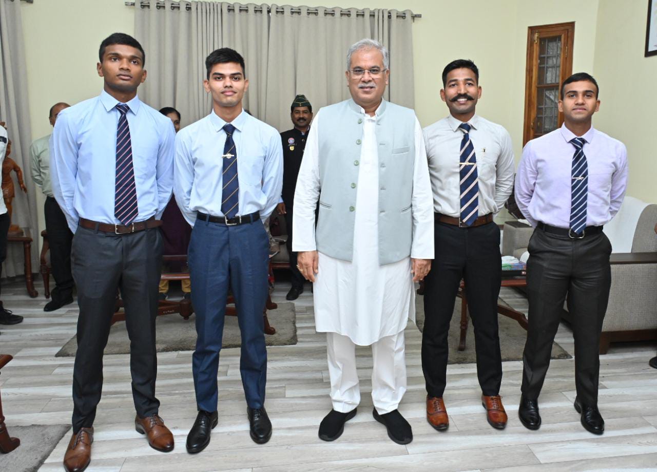 नवनियुक्त अधिकारियों ने मुख्यमंत्री को बताया कि विगत 10 जून को आईएमए देहरादून में पासिंग आउट परेड सम्पन्न हुई। जुलाई माह में वे कार्यभार ग्रहण करेंगे। मुख्यमंत्री ने नवनीयुक्त लेफ्टिनेंट अधिकारियों को बधाई देते हुए उन्हें पदेन दायित्वों के कुशलतापूर्वक निर्वहन हेतु शुभकामनाएं दीं। उन्होंने कहा कि छत्तीसगढ़ से भारतीय थल सेना में आपका चयन राज्य के युवाओं को देश सेवा के लिए आगे आने प्रेरित करेगा। इस अवसर पर पूर्व सैनिक श्री ननकू राम साहू, श्री भूपेंद्र ठाकुर, श्री नवीन गर्ग, श्री राज कपूर सहित नवनियुक्त अधिकारियों के अभिभावकगण उपस्थित रहे।