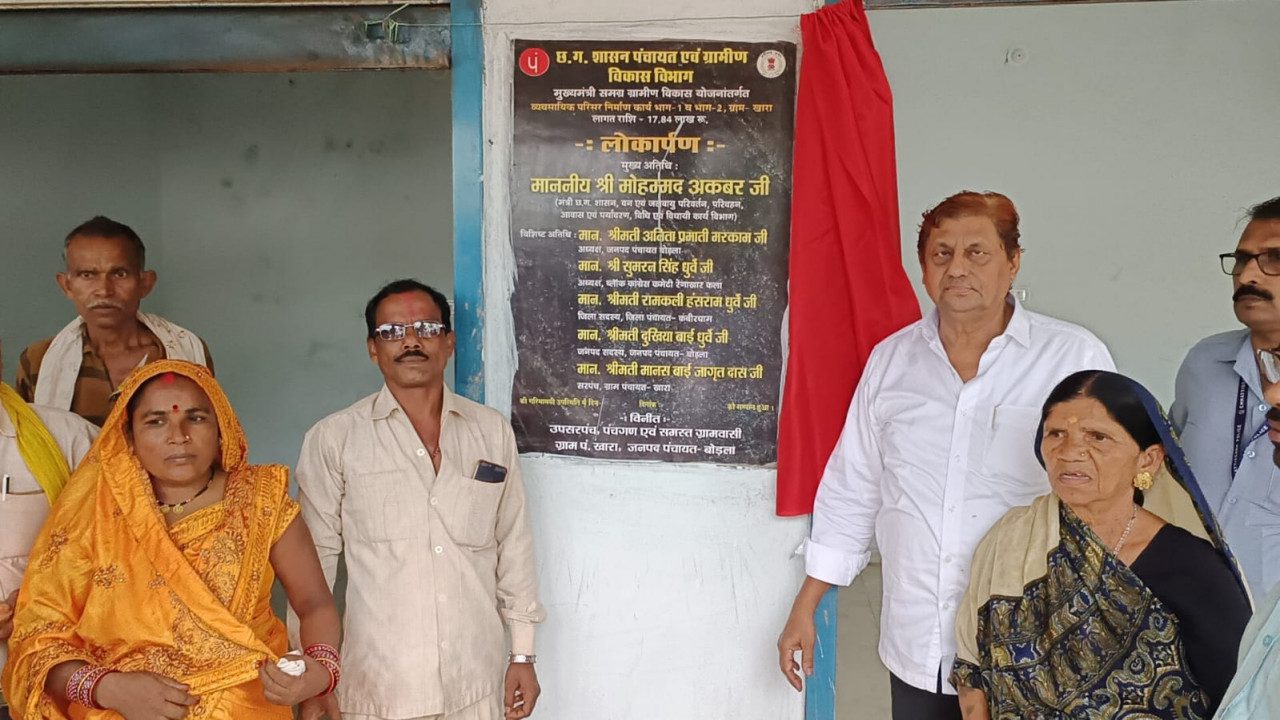 कवर्धा प्रदेश के वन, परिवहन, आवास, पर्यावरण, विधि विधायी तथा जलवायु परिवर्तन मंत्री व कवर्धा विधायक श्री मोहम्मद अकबर ने बोड़ला विकासखंड के सुदूर वनांचल क्षेत्र ग्राम खारा में रोजगार के अवसर को बढ़ाते हुए मुख्यमंत्री समग्र ग्रामीण विकास योजना अंतर्गत 17 लाख 84 हजार रूपए की लागत से व्यवसायिक परिसर की सौगात दी। उन्होंने व्यवसायिक परिसर का विधिवत लोकार्पण किया। उन्होंने इसके लिए क्षेत्रवासियों को बधई एवं शुभकामनाएं दी। इस अवसर पर संबंधित ग्राम के सरपंच, जनप्रतिनिधि उपस्थित थे।