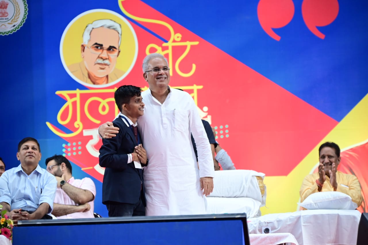 CM भूपेश बघेल ने धमतरी के युवा सोमेश्वर गंजीर के जोशीले भाषण को सुनकर अपने पास बुलाकर गले लगाया और आशीर्वाद दिया